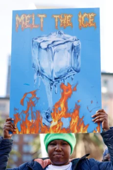 The protesters in Minneapolis are contending with subfreezing temperatures, accumulated snow and ice, and some were seen some carrying signs saying “De-ICE Minnesota” and “ICE melts in Minnesota.”