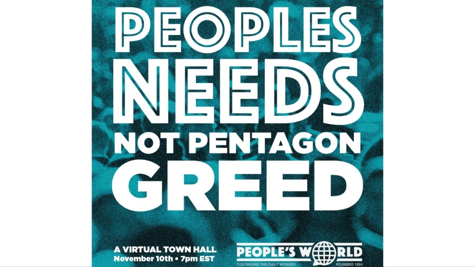 Join us Friday, November 10th at 7:00 p.m. Eastern, 6 p.m. Central, 5 p.m. Mountain, and 4 p.m. Pacific for a People’s Needs, Not Pentagon Greed Virtual Town Hall where we hope to shed light on the problem and propose solutions.