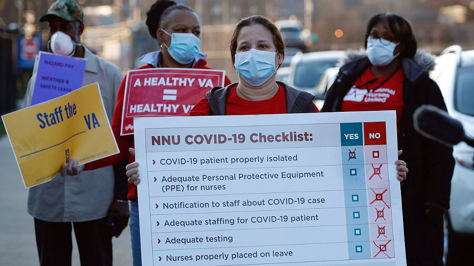 WASHINGTON—Short-staffing. Temp nurses hired off the street who are more interested in paychecks than patients. No N95 masks for months. Arbitrary management decisions with workers and their union cut out of the loop. No input on how to improve the medical care for the nation’s veterans.