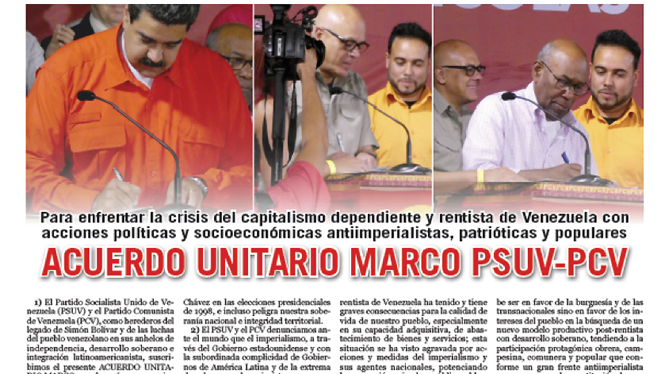 Texto del «acuerdo unitario marco PSUV-PCV»