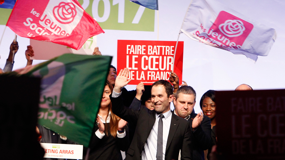 The Socialist Party primary election produced a surprise victory for Benoît Hamon, a young frondeur [rebel] who was fired as Minister of Education after criticizing the economic policies of President Hollande and Prime Minister Valls. Hamon has called for a “renegotiation of the meaning of work,” with proposals like a universal basic income, support for innovation, and measures to protect workers from burnout.