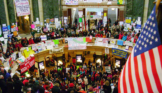 Photo: Walker’s attack on unions that drew thousands to the Wisconsin state capitol in the winter of 2011 is back again now. John Paul Holmes/Flickr (CC)