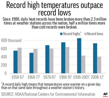 Since 1988, daily heat records have been broken more than 2.3 million times at weather stations across the nation, half a million times more than cold records were broken.