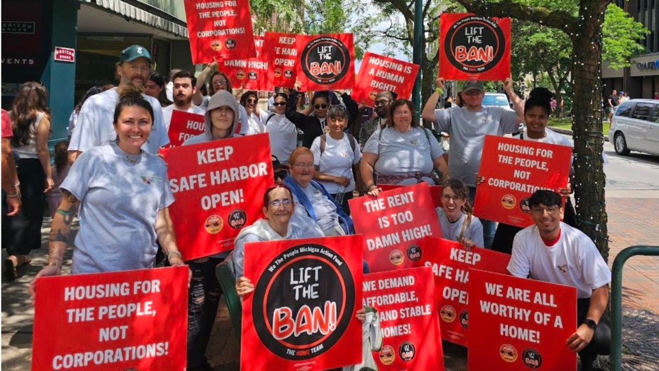 Along with raising awareness about Safe Harbor, demonstrators urged people to sign a petition to lift a ban on rent control in Michigan.