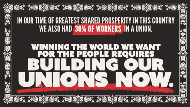 “But the only way we’ll have it is if we have unions. Union now is about how we get there. In the 50s and 60s, we had more of a middle class then than we have now, more union density then than now, and less billionaires and millionaires.”