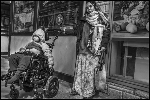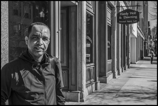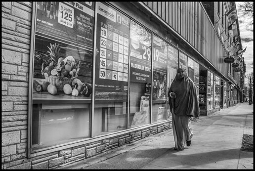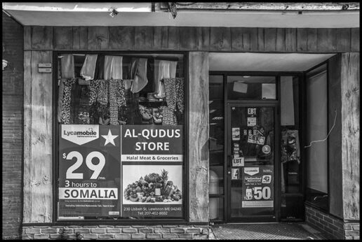 These photographs show the old mill buildings of Lewiston’s past, the slum apartments where Somalis lived when they first arrived, and a few community members in front of their new stores and businesses.