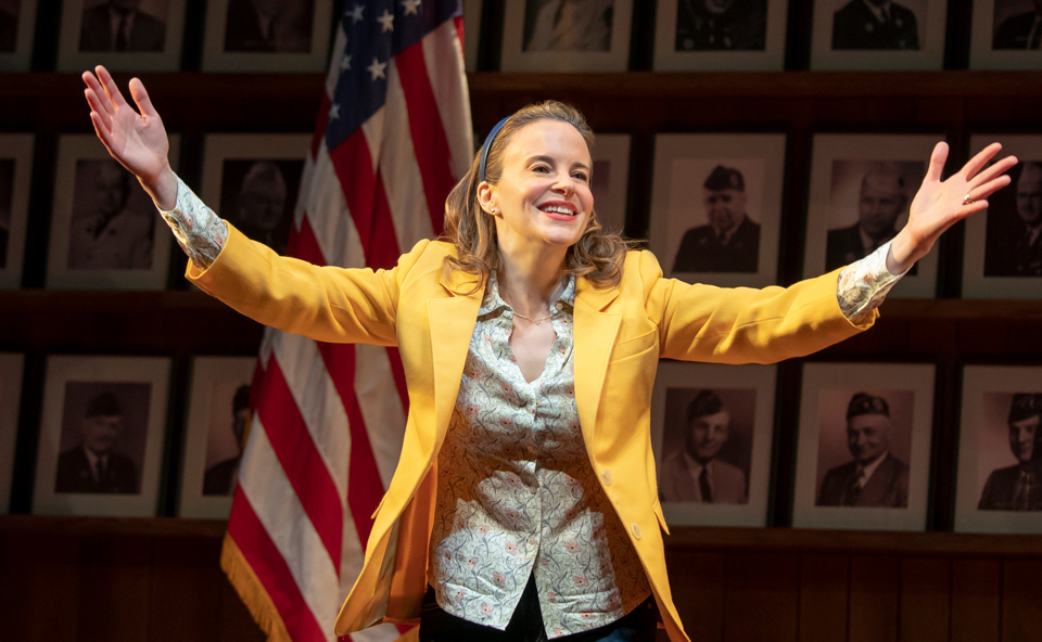 The play reaches back to the late 1980s, when 15-year-old Heidi, from her hometown of Wenatchee, Wash. (Apple Capital of the World), traveled across the United States to participate in Constitutional debate competitions sponsored by the American Legion, earning her college tuition with her prize-winning reflections on “What the Constitution Means to Me.” Aside from genre-bending in form, the play engages in a number of other kinds of shape-shifting. Dizzia portrays both Heidi Schreck now, a mature, wiser and perhaps more cynical woman in her 40s, and wistfully, without any change of clothes, the 15-year-old she once was. Later, when she engages spontaneously with the teenage debater, she can’t possibly still be Heidi Schreck; by now she must be herself, Maria Dizzia. Enough to make you dizzy (sorry!) sorting out everyone’s identity at any moment.