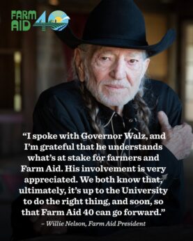 Prior to the tentative agreement, Farm Aid was resolute about not crossing a picket line and put the responsibility to resolve the strike squarely on the shoulders of the university. In a statement, the organization declared: