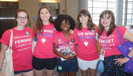 Photo: Group of young women from Feminist Majority petitioning at DNC. | Chauncey K. Robinson/PW