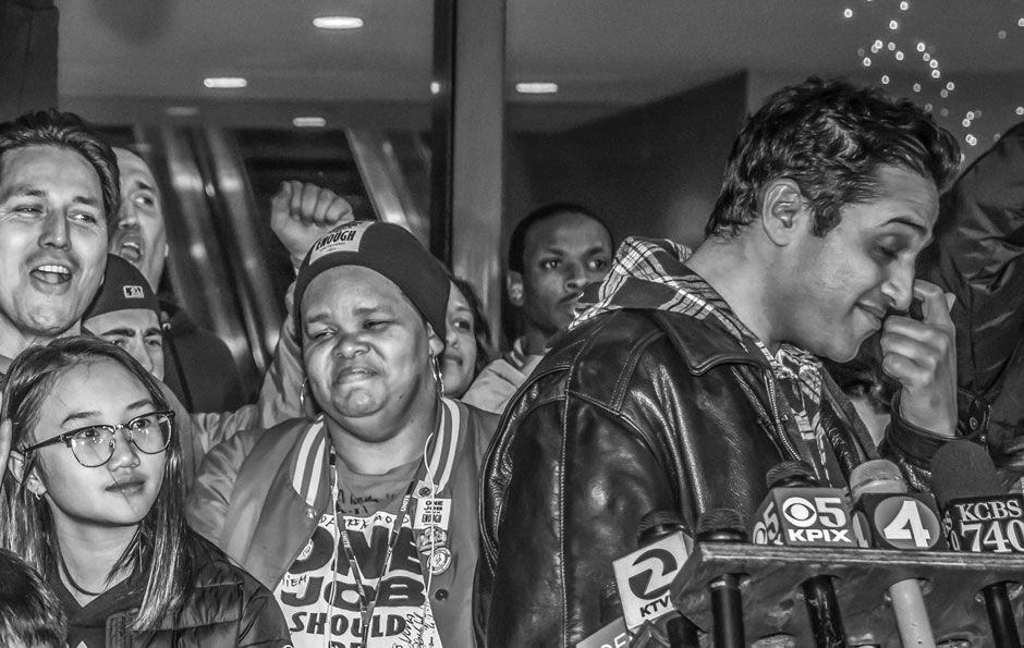 Now we’re going to go to the other hotel chains in San Francisco, and [tell] them that they have to accept what we negotiated with Marriott. Marriott [overshadows] the others, but Hilton, Hyatt, Intercontinental are all waiting in the wings. Several other UNITE HERE locals have contracts expiring with Hilton, so we have to challenge Hilton to do right by their workers. I’m sure these other hotels are studying the terms of this deal. Can’t imagine they’re too happy about it.