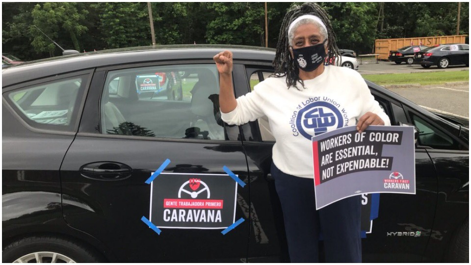 WASHINGTON—From Fairbanks to San Juan and from Bangor to Honolulu, workers nationwide turned out June 17 in car caravans, at press conferences, and in call-ins to lawmakers to demand solons “Put Workers First For Racial And Economic Justice.”