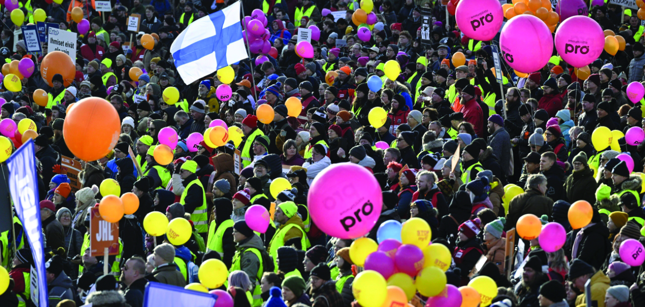A SAK-commissioned public opinion poll in February of 2,500 people found a 51%-42% margin favoring the politically oriented strikes. In a further indication of popular sentiment, some 13,000 Finns jammed a February 1 protest in the main square of the capital city of Helsinki, disregarding both overcast winter conditions and the very short span of daylight.
