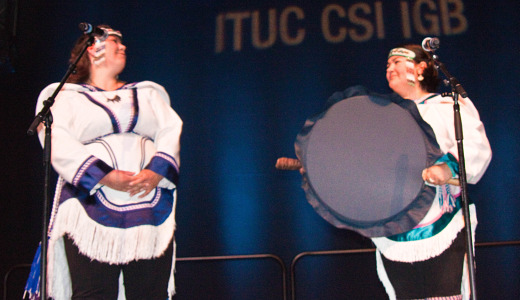 Photo: Inuit throat-singers welcome delegates to the second congress of the ITUC in Vancouver. (PW/Scott Marshall)