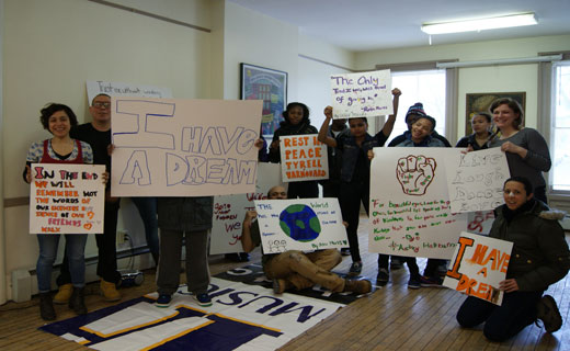 Photo: New Elm City Dream youth prepare posters for their African American History Month march against violence and racism and for jobs. Photo credit: Eamon Linehan