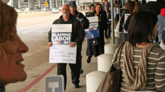 February 15, 2012The flight attendants called the action, and the pilots and Transport Workers Union quickly joined in. Other unions and solidarity activists drove into DFW International Airport for the action.