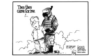 July 27, 2020"Fascism is never satisfied and has an insatiable appetite for the liberties of men and women everywhere. It is a secret combination that seeks to destroy the liberty of all." – People’s World cartoonist Greg Kearney