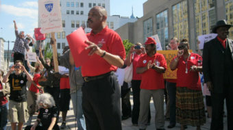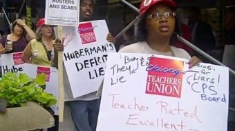 July 29, 2010CHICAGO - Nearly a hundred teachers, parents, students, labor leaders and community activists rallied at the Chicago Board of Education building here July 28 against recent massive teacher layoffs.