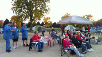 October 4, 2012Workers whose jobs are being outsourced by Bain Capital closely watched the presidential debate last night from a campsite called Bainport.