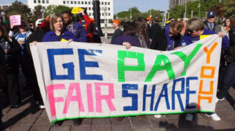 April 25, 2012Chanting "GE, pay your taxes," several thousand rallied in downtown Detroit this morning, the site of the GE annual shareholders meeting.