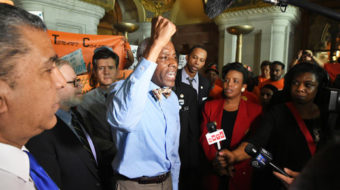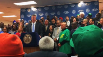 Mayor De Blasio helps celebrate NY Fight For 15 victory