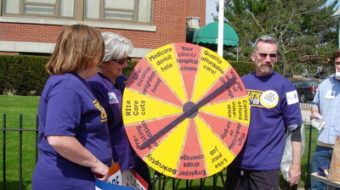 April 21, 2009CRANSTON, R.I. — Wendy Laprade, a nurse and Service Employees International Union activist, played “health care wheel of (mis)fortune” at a rally for national health care reform here this weekend. Her spin landed her on “pre-existing...
