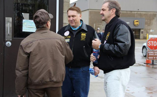 Photo: Two Teamsters, seen here with a UPS worker. Teamsters Facebook page